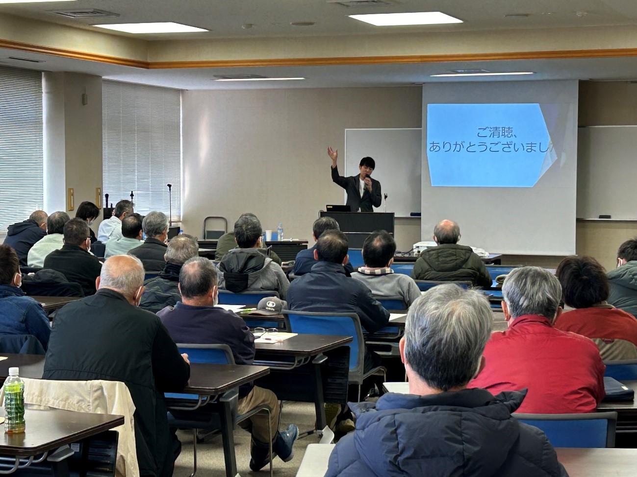 「このまま日本は暑くなり続けますか?」、「米の生育に必要な雪解け水が少なくなって困っていますが、この傾向は続きますか?」、「天気予報アプリが当たらない。何を使えばいいですか?」など、普段皆さんが何に困っている事が知ることが出来て、私自身今後のヒントを得られた講演会でありました。