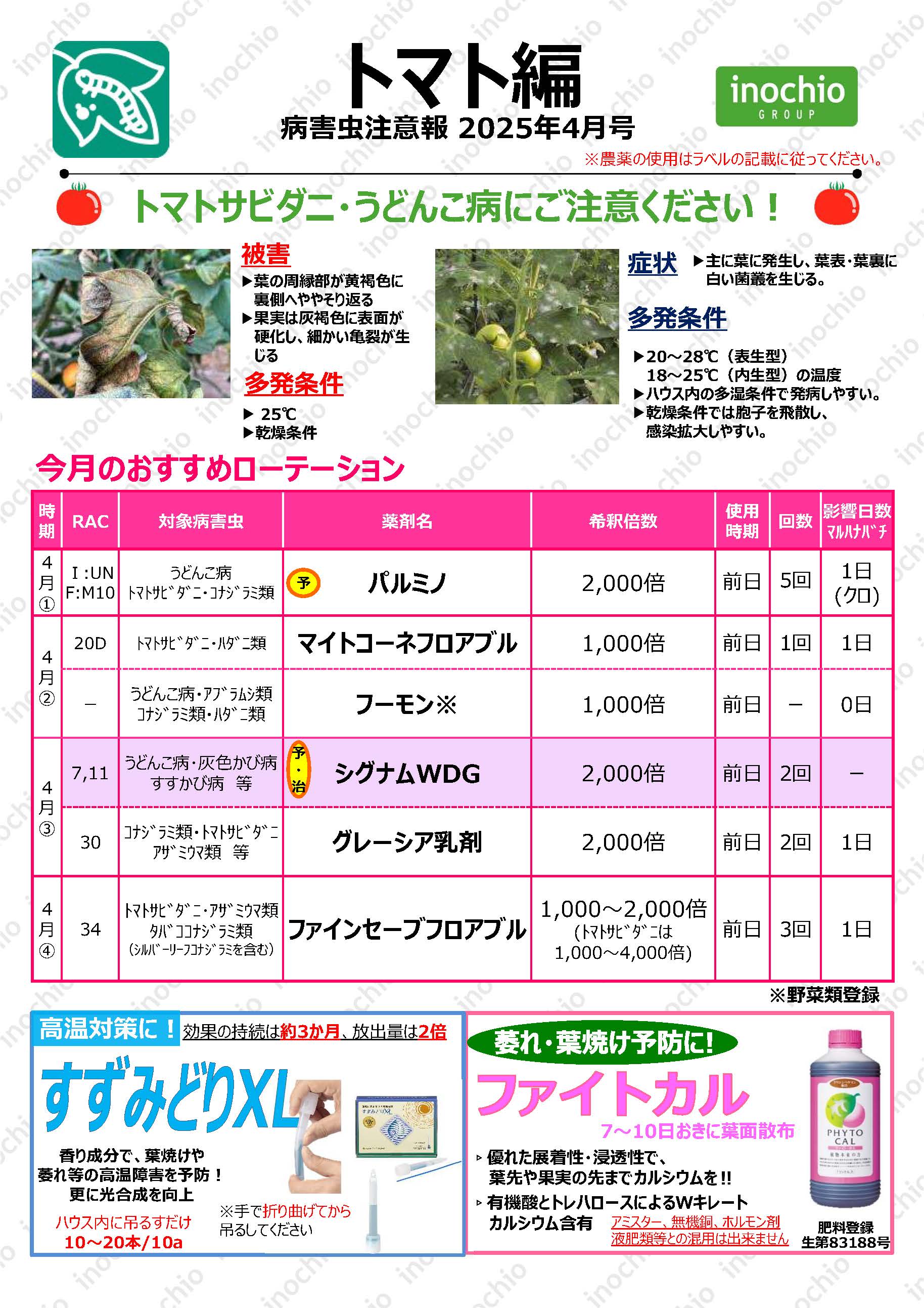 イノチオグループでは、2000年頃より農作物の防除に関するお役立ち情報を皆さんにお伝えするために『防除チラシ』の作成を行っています。