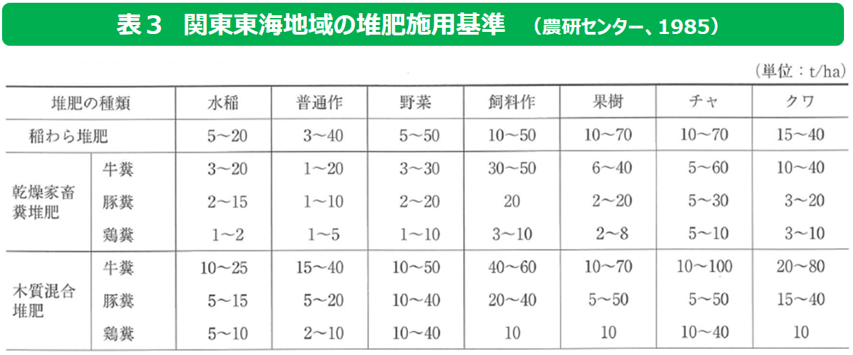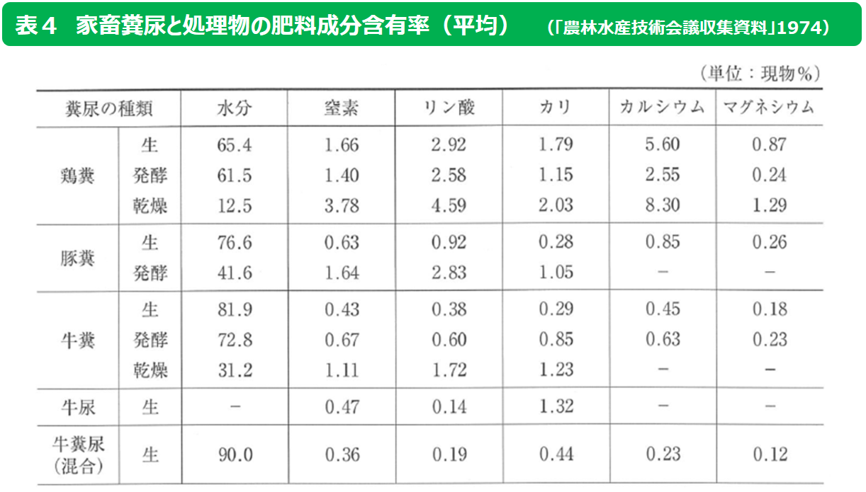 堆肥の原料となる有機物は、微生物の働きによって分解され腐熟化されます。したがって、堆肥づくりは微生物の活動を活発にすることがポイントで、①温度、②水分、③空気、④含有する炭素と窒素の割合(炭素率=C/N比;表1)の4つの条件が大切です。