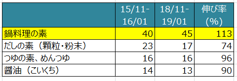 はじめまして。インテージの牧野です。ラグビーワールドカップに世界陸上、バレーボール、と世間はスポーツの秋で賑わっていますが、秋といえば味覚の秋。いよいよ秋も深まり、肌寒さを感じると、鍋が恋しい季節になってきたのではないでしょうか。