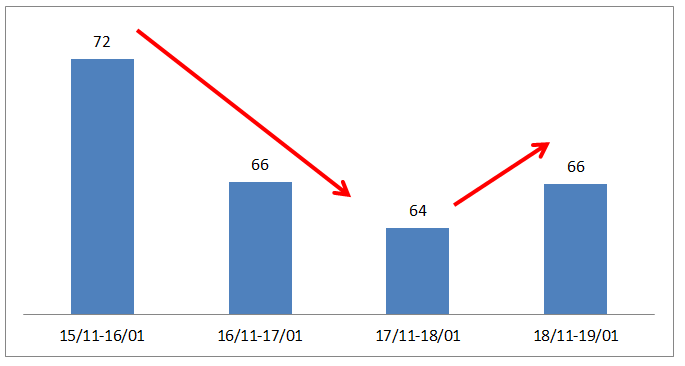 (京浜+東海+京阪神、20代〜70代 2人以上家族の主家事担当者、夕食、2015年〜2018年 各年11月~1月)