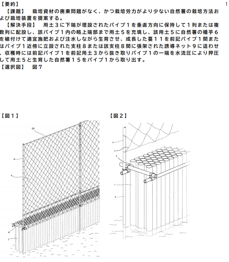 「自然薯の栽培方法及び栽培容器」(特許4654223)