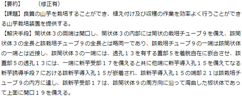 栽培方法に関して、特許権者がご個人のお名前になっているもの(生産者個人の方と思われるもの)として、例えば、次のようなものがあります(発明の詳細説明は省略しています)。