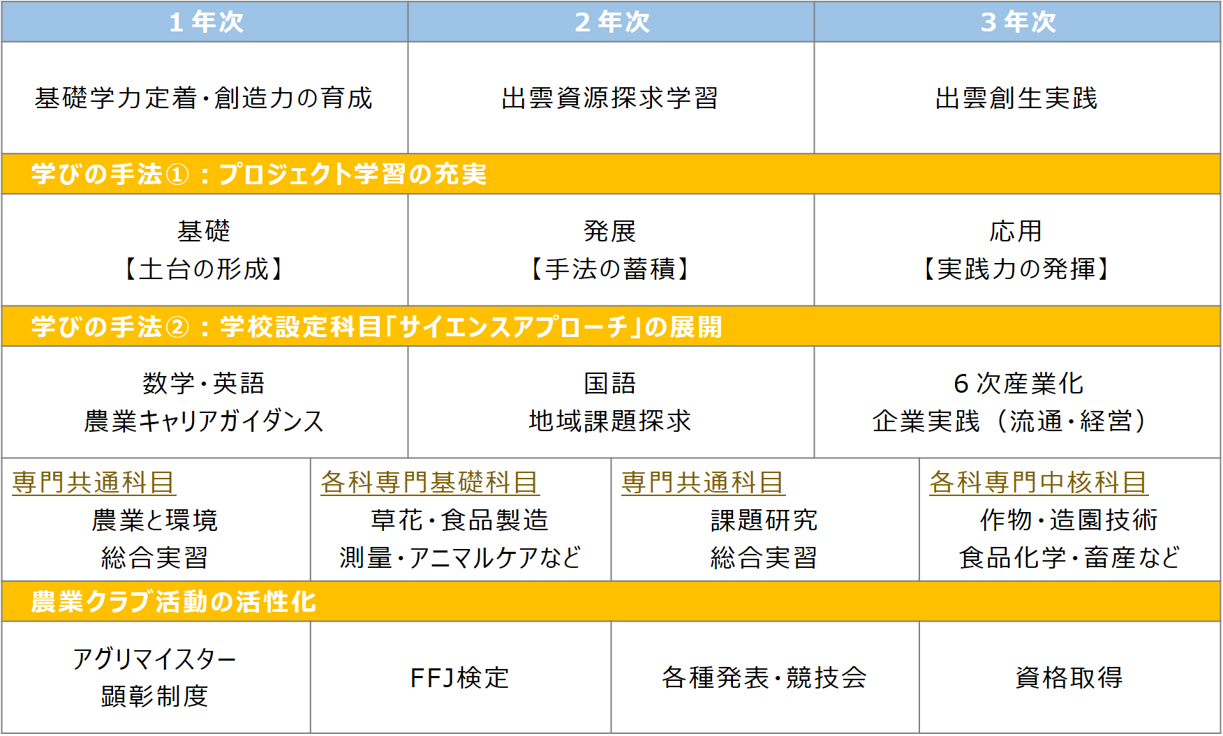 これは、「出雲創生力(企画力・実践力・想像力)」を育成し、地域の第一線で農業を支える「出雲を愛する農業人」として活躍できる人材の育成を図る取り組みです。