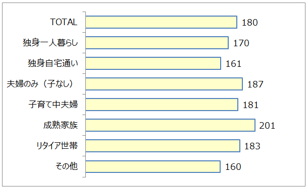 また、誰に購入されているかを見たところ、子育て世帯での伸び率が高いのはもちろんですが、おもしろいことに独身家庭や夫婦のみ家庭、リタイア世帯などすべての層でまんべんなく伸びていることが分かります。