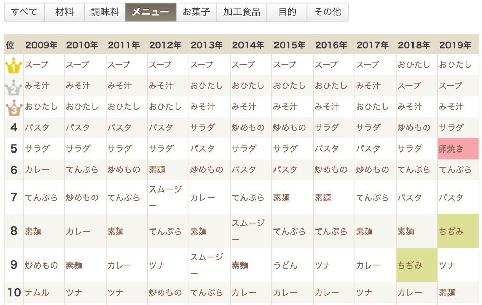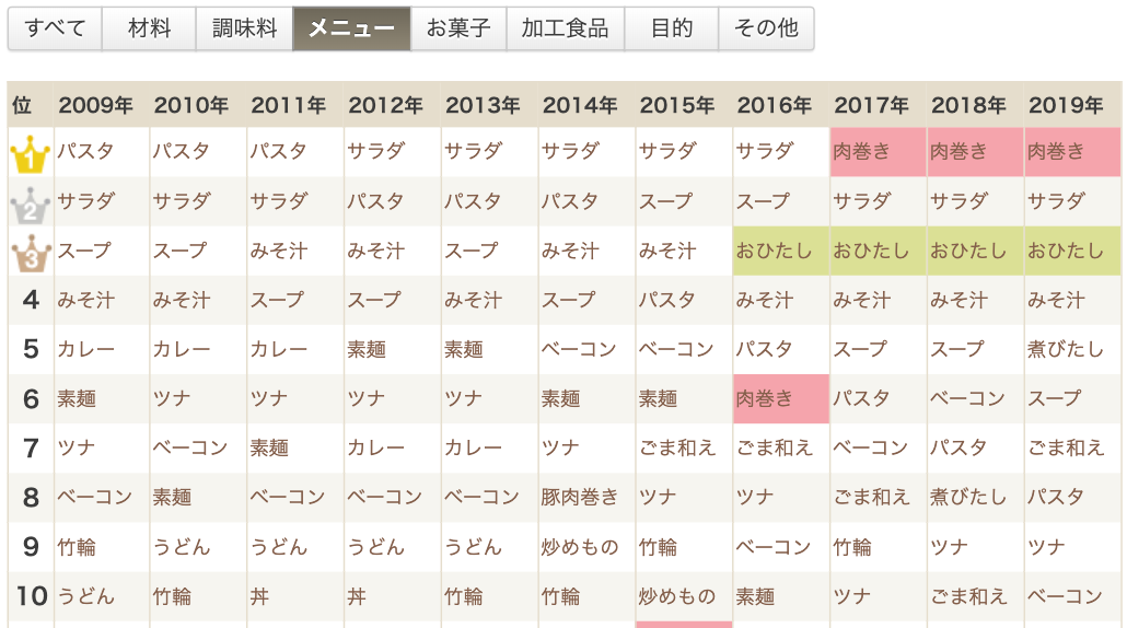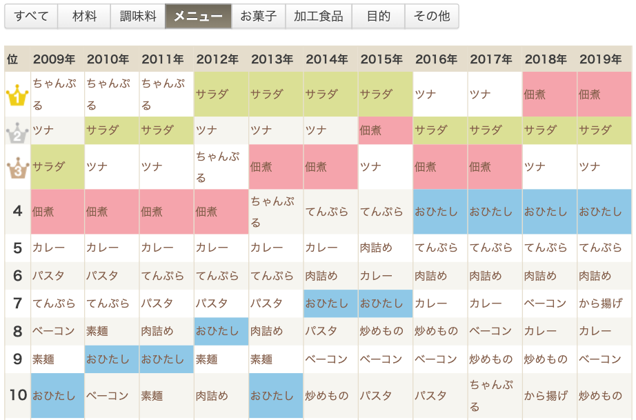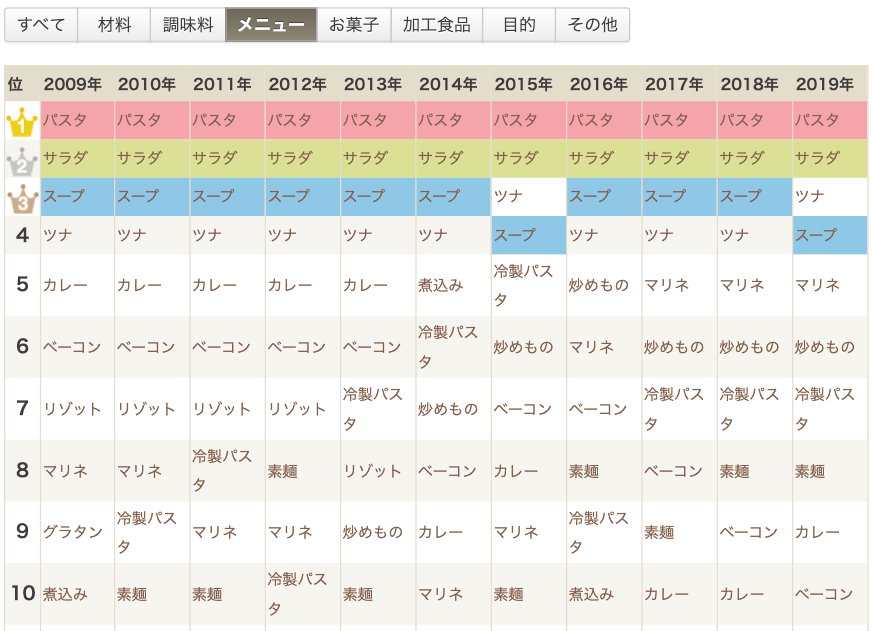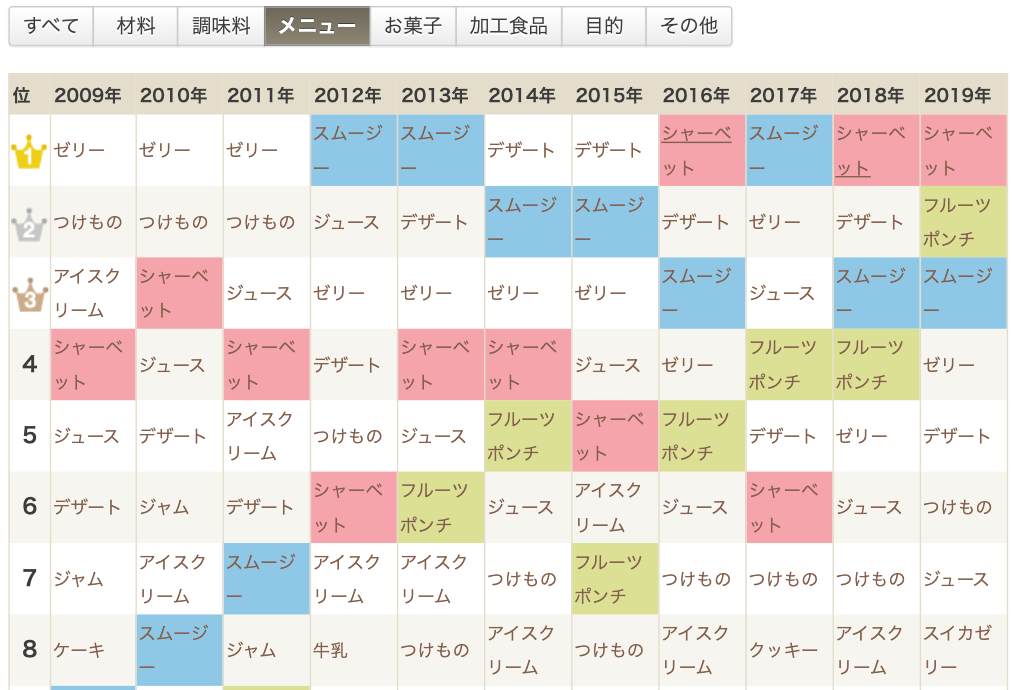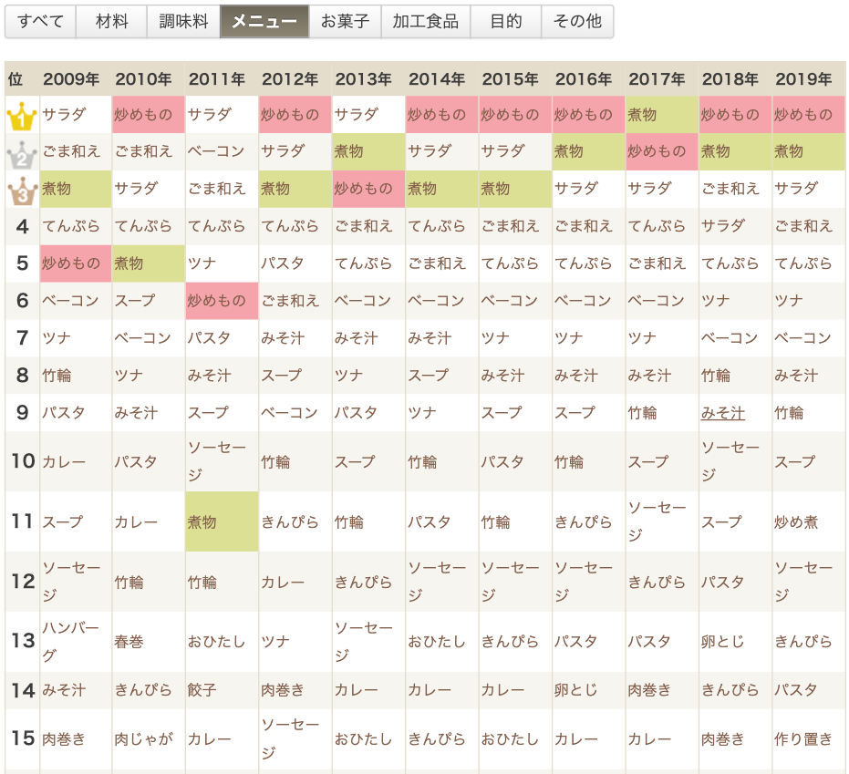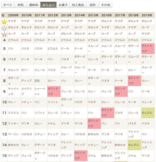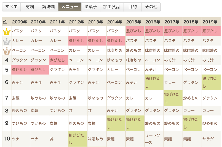 本稿ではレシピ検索を通して食卓の実態を探るべく、クックパッドに日々蓄積されるレシピ検索ビッグデータを可視化できる「たべみる」を用いて、「話題の食材とメニューの関係」を分析いたします。