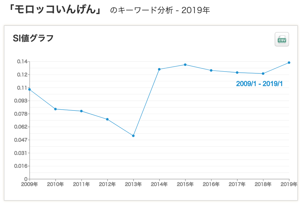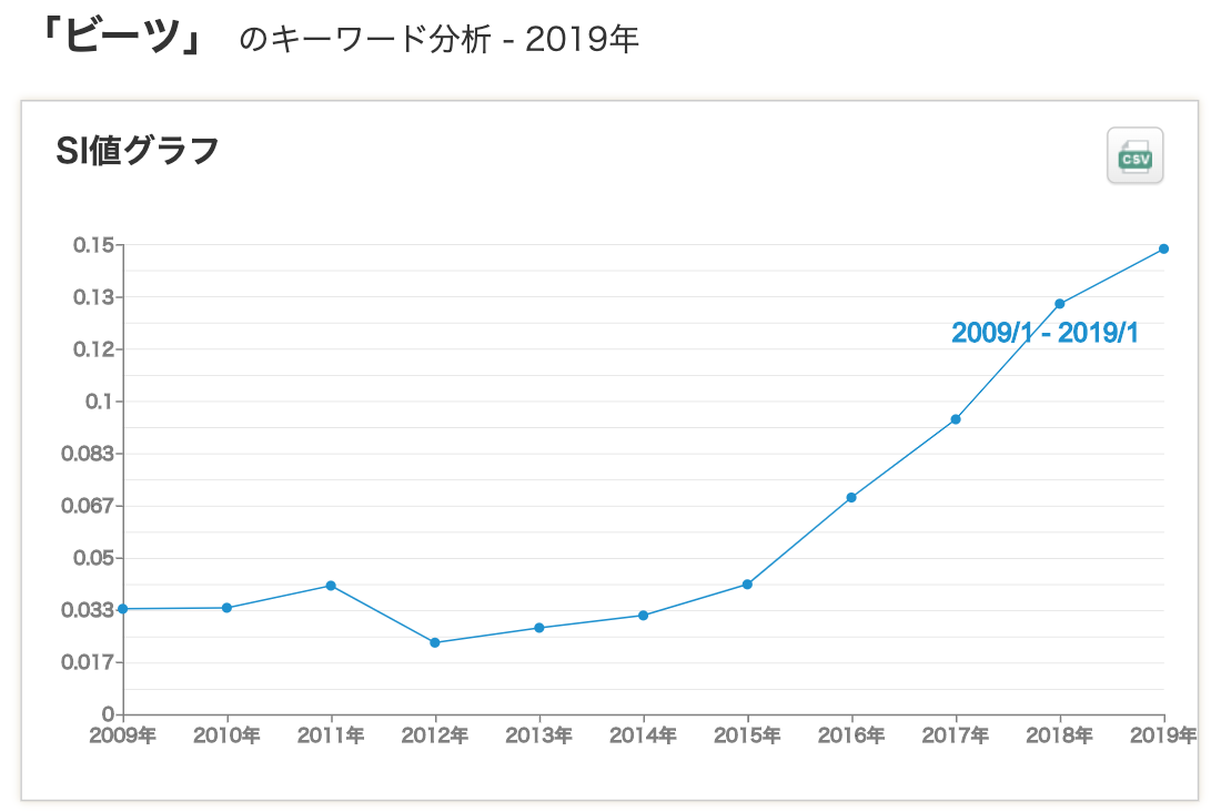 同時期に「大量消費」というキーワードの検索頻度が上昇する傾向があります。「大量消費」というキーワードは2013年頃から検索されはじめ、現在でも検索頻度の高いキーワードとなっています。