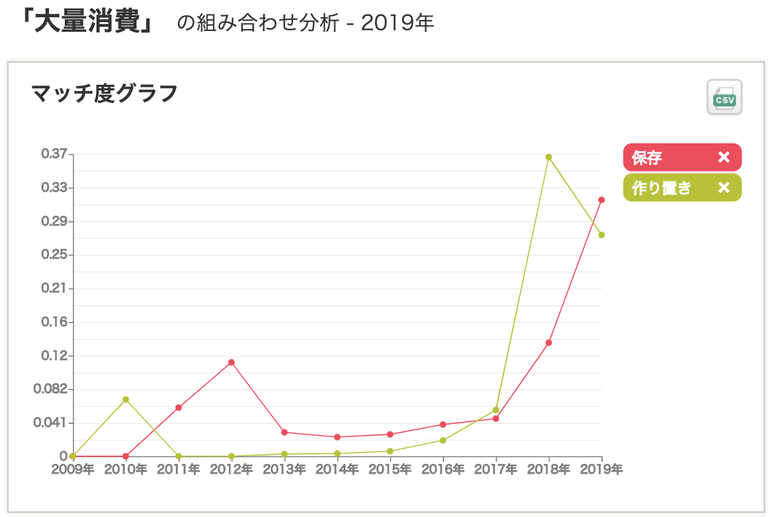 ※マッチ度:「大量消費×保存」など「○○×●●」の組み合わせて検索される割合
