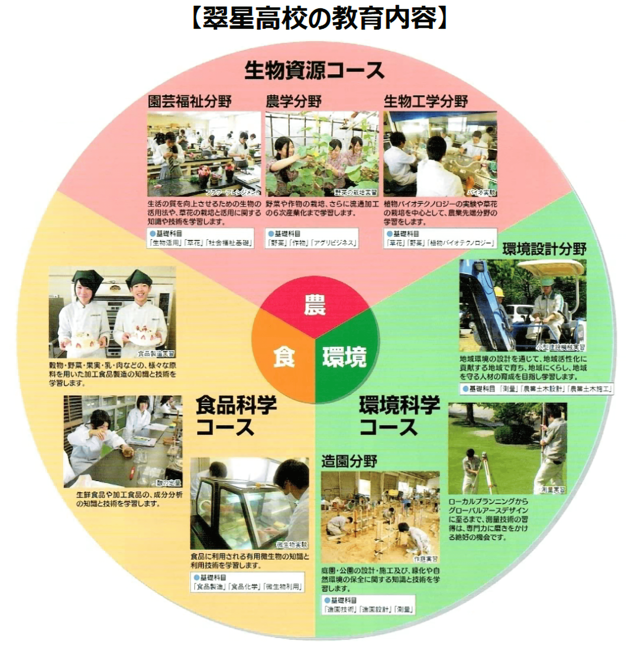 石川県立翠星高等学校は、石川県中央部の白山市にある、今年で創立144年目を迎える全国でも有数の長い歴史と伝統を誇る農業高校です。2000年に全国で初めての単位制農業専門高校に改編した際に、校名も松任農業から現在の翠星に変更しました。