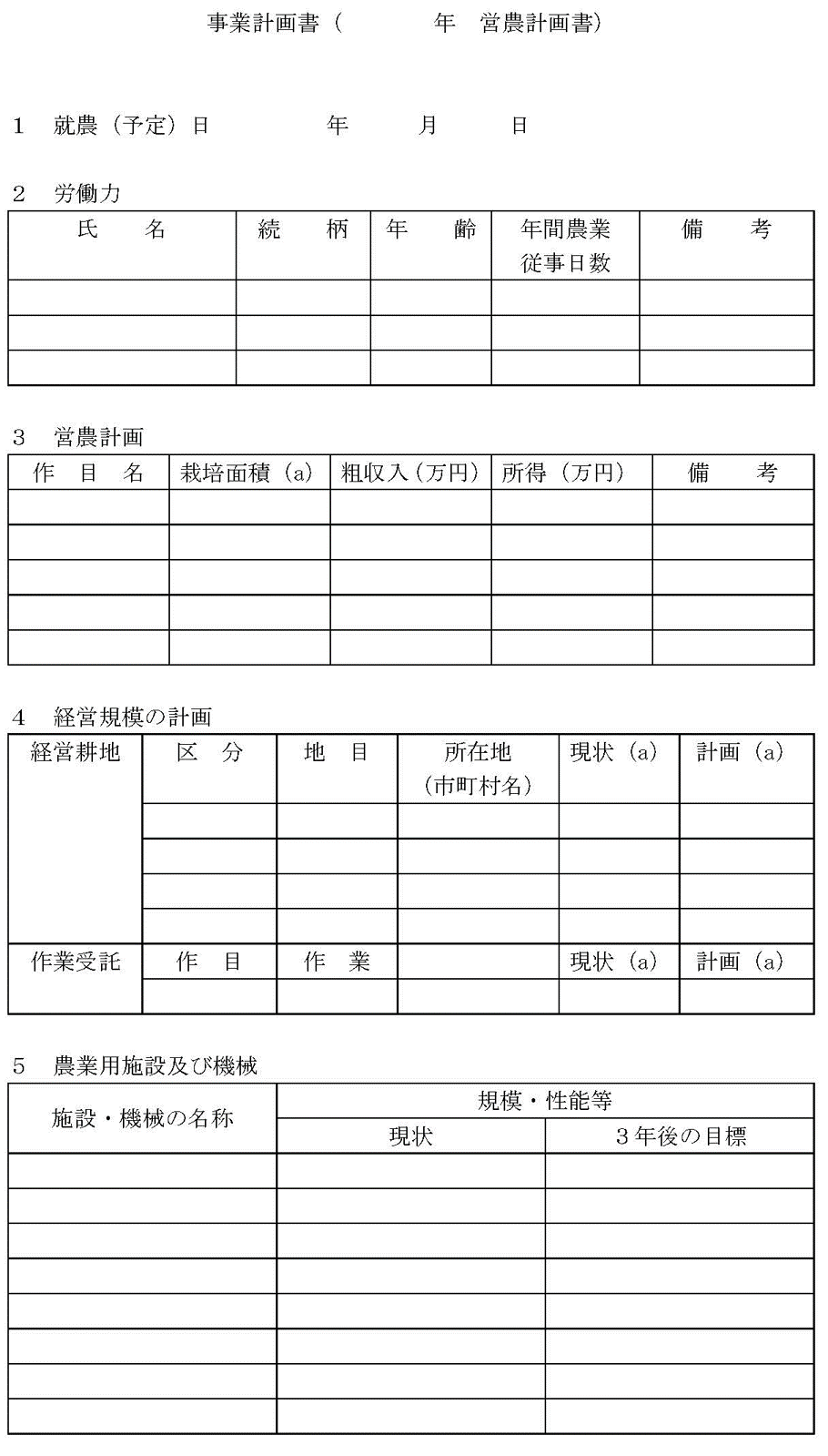 営農計画では、自己資金、借入金、生活費、施設・機械への投資など、おおよそ5年先までの資金繰り計画を記入します。