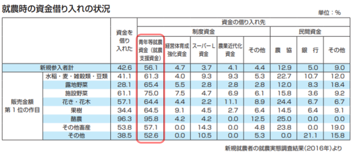 できる限り自己資金を活用することが望ましいですが、公的な融資制度や民間の融資を活用するのも有効な方法です。実際に新規就農者の4割が資金の借り入れを行っています。