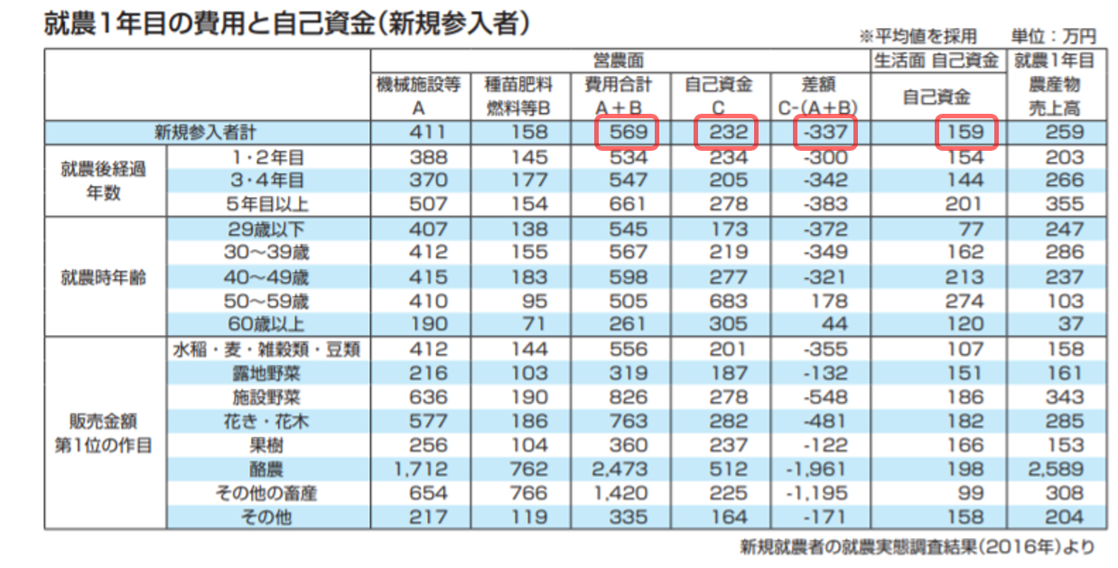 ところが、就農1年目で実際に営農にかかった金額は569万円と、自己資金を337万円上回っています。