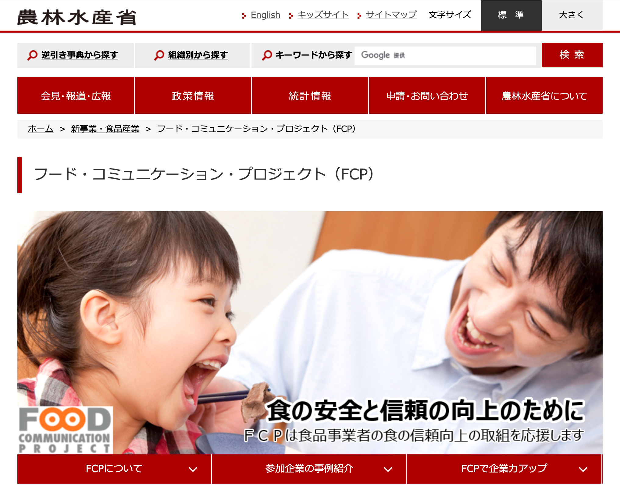 農林水産省が平成20年度に、食に携わる関係者が協力し、消費者の「食」に対する信頼向上のために取り組むプロジェクト『フード・コミュニケーション・プロジェクト(FCP)』をスタートさせました。