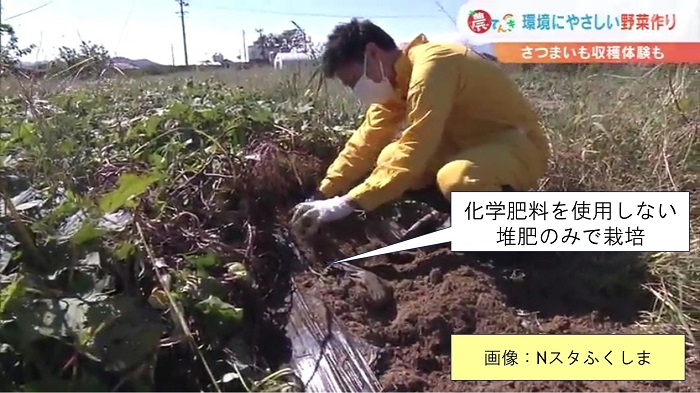 こちらでは、ほとんど「化学肥料」、「化成肥料」を使用しない野菜作りをしています。感謝農園平井さんでは、日々増えていく耕作放棄地を積極的に引き取り、雑草がボーボーに生えている状態から、腐らせ「堆肥」にして野菜を植えるという循環型の農業をしているとの事でした。