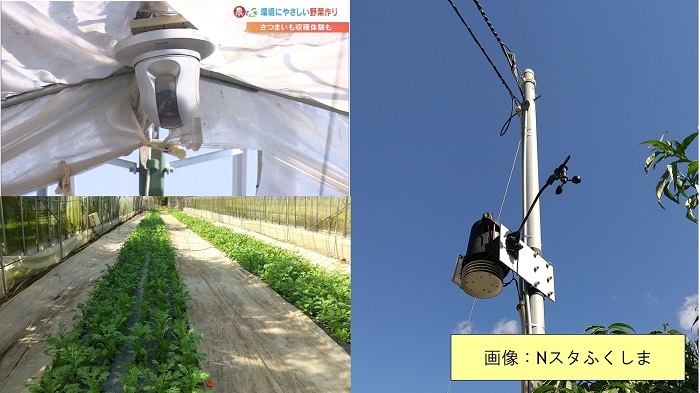 感謝農園平井さんでは、至る所に最先端の機械が設置されていました。気象予報士にはなじみ深い風向風速計のほか、カメラなどが設置されており、天気のデータを随時収集することで栽培に生かしています。「勘や経験」の時代から「数値」にもとづいた生産をする事で経営を安定させているのですね。