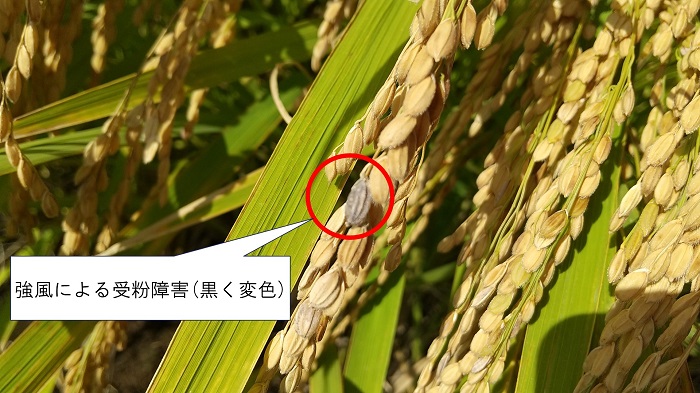 ただ、気になったのは所々で黒くなっている穂でした。これは、8月の開花時期にも強風の日が多く、受粉に失敗してしまったからだという事です。