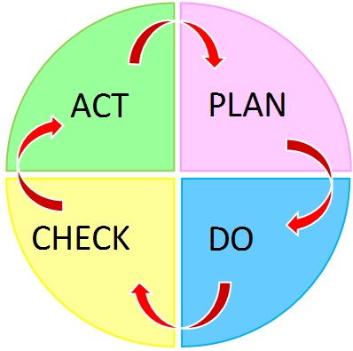 カイゼン活動を行う際、PDCAサイクルの活用をお薦めしています。PDCAは、英語の「Plan, Do, Check, Act」の頭文字をとったものです。