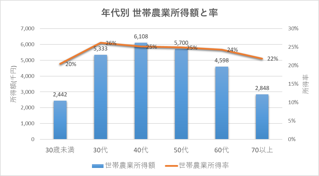 (世帯農業所得率は、所得を収入金額で割った率であり、高いと費用対効果の効率性が良いということです。)