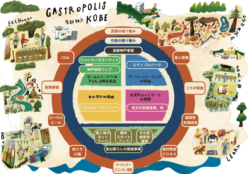 その後も、様々な個別のプロジェクトを立ち上げながら、これらがバラバラにならないように大きなビジョン(構想)としてまとめたたものが『食都神戸』です。
