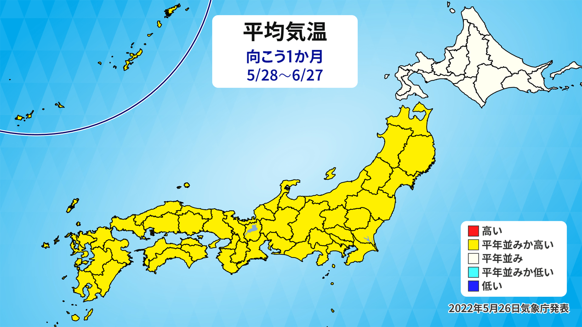 さらに、気温も見てみましょう。すると今度はほぼ全国的に平年並みか高い予想です。雨や曇りの日が多く日照時間が少なくても、西・東日本はジメジメそして、蒸し暑く感じられるかもしれません。今月は病虫害の多発にも注意したいですね。