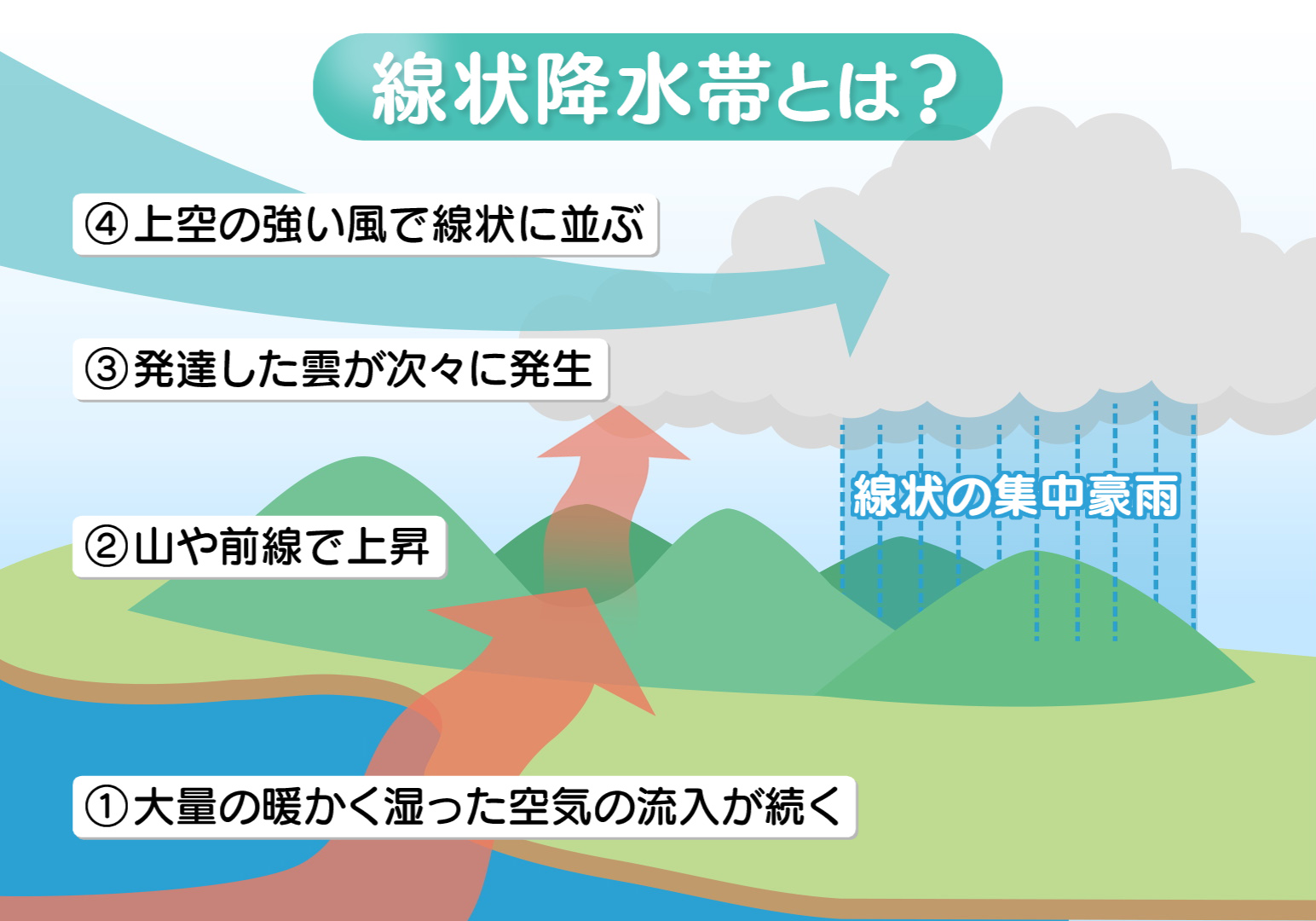 最近、梅雨時期の頃に線状降水帯という言葉を耳にすることはありませんか?実はこの線状降水帯は、まさに梅雨前線ができる今の時期に発生しやすいのです。そして、この現象が発生している時は、すでに危険な状況となっていると言えます。