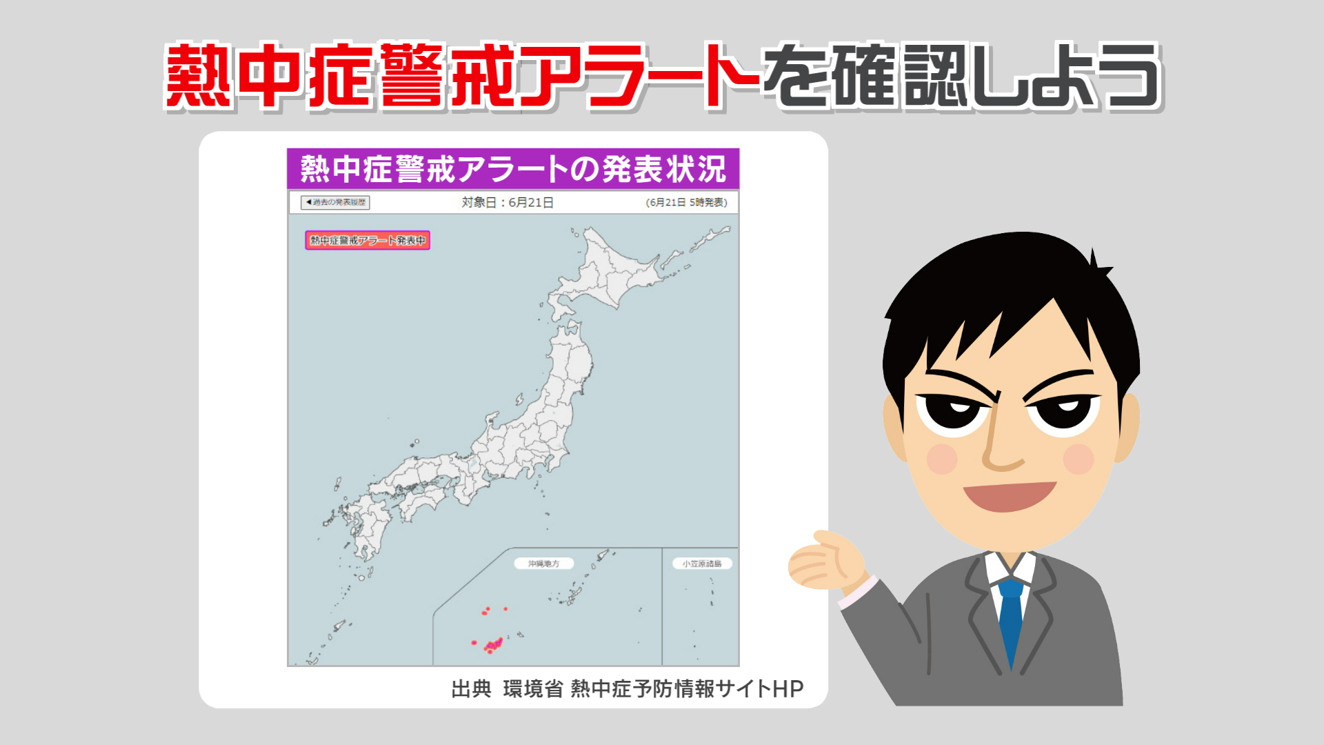 5月のコラムでも詳しく書いていますが、熱中症の危険性が極めて高い日に発表される「熱中症警戒アラート」を活用するなど対策を徹底していきましょう。