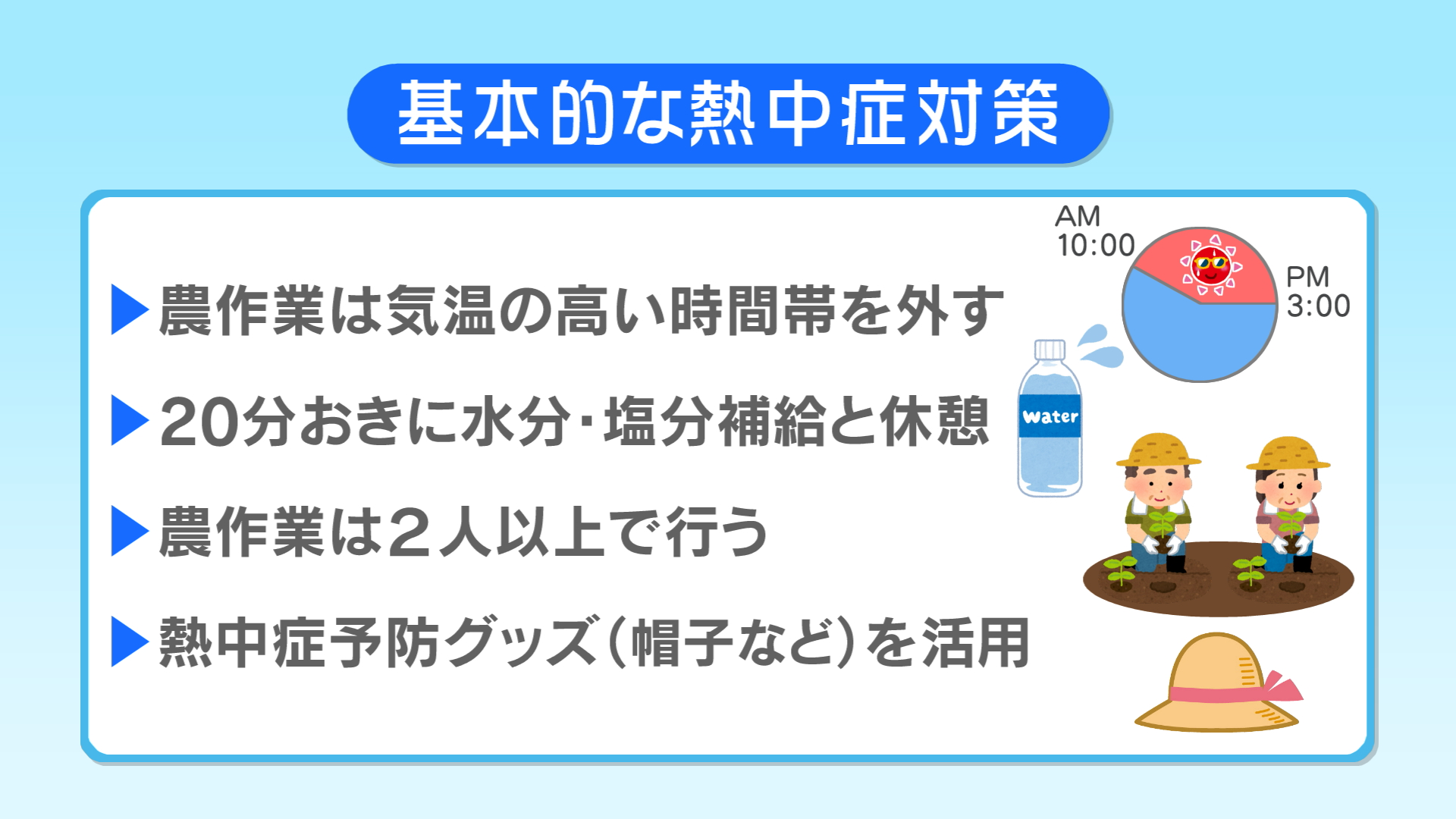 さらに農作物の高温障害や、作業する農家の方にとっては日々の熱中症対策も大切となりそうです。