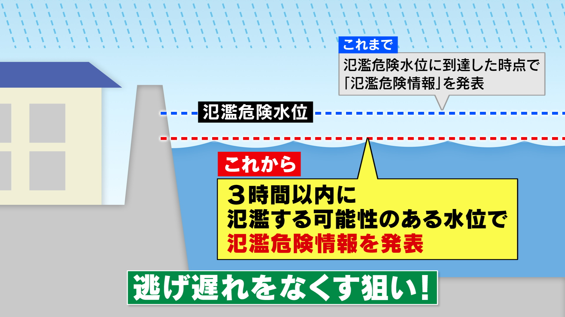 これから…3時間以内に氾濫する可能性があると予測した時点で「氾濫危険情報を発表」