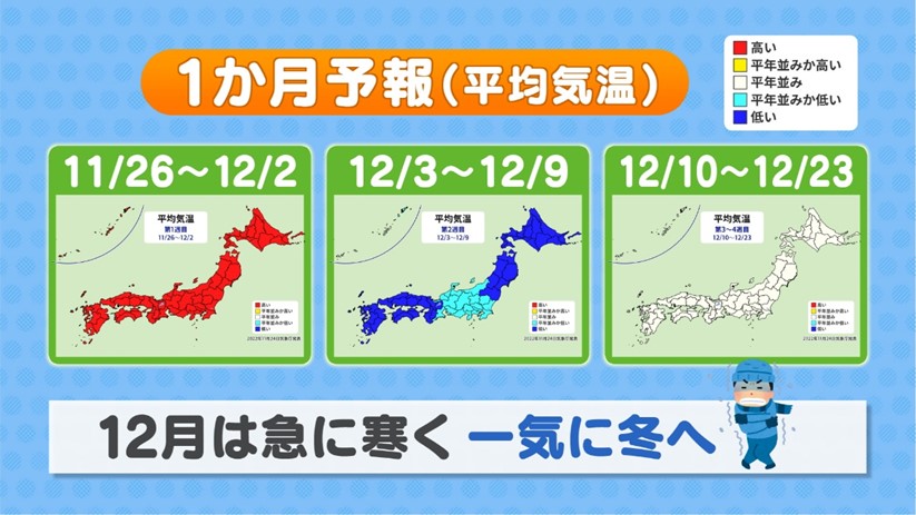 一方で、気象庁は11月22日に3か月予報を発表しました。