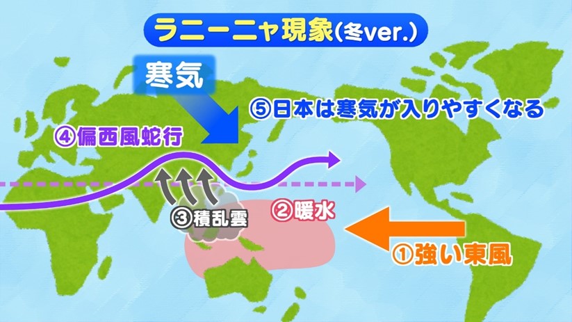 この大雪のおそれの原因は、日本から遠い海で起きている「ラニーニャ現象」です。なぜ、そんな遠い海の出来事が日本の天気に関係あるのでしょうか?