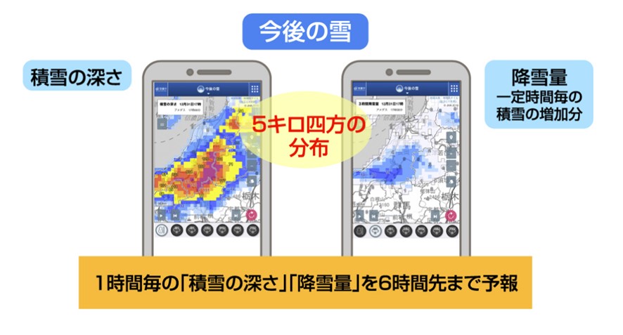 近年、記録的な大雪により、車が立ち往生するなど、社会活動に深刻な影響が出ています。そこで気象庁は昨年11月に「今後の雪(降雪短時間予報)」の提供を開始しました。今までは、今どこで雪が降っているかを確認する「現在の雪」のみの提供でしたが、そこに今後6時間先の予報を盛り込んだ「今後の雪」という新たな情報に生まれ変わりました。