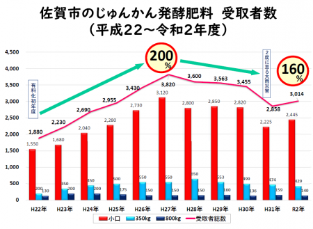 実際に、佐賀市の農家で下水汚泥肥料の受け取り者数は有料化初年度(2010年度)に比べ、2021年度は+160%と大幅に増加。多くの農家から支持を得ていると考えています。