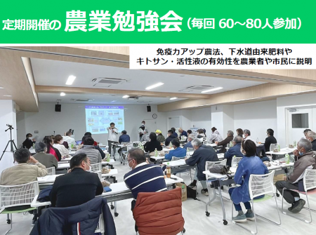 わたしたちは、定期的に農業勉強会を実施し、毎回60~80人が参加する会となっています。そこでは、下水汚泥肥料等の有効性を説明しており、こういった地道ですが継続的な取り組みにより、下水汚泥肥料の認知度向上につながっていると感じます。