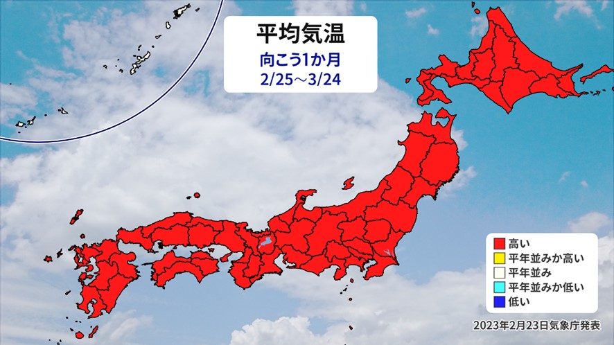 3月の期間全体を通して全国的に平年より高い予想です。地球温暖化の影響なのでしょうか。近年は季節の変わり目がないくらい天気や気温が極端だなと感じます。