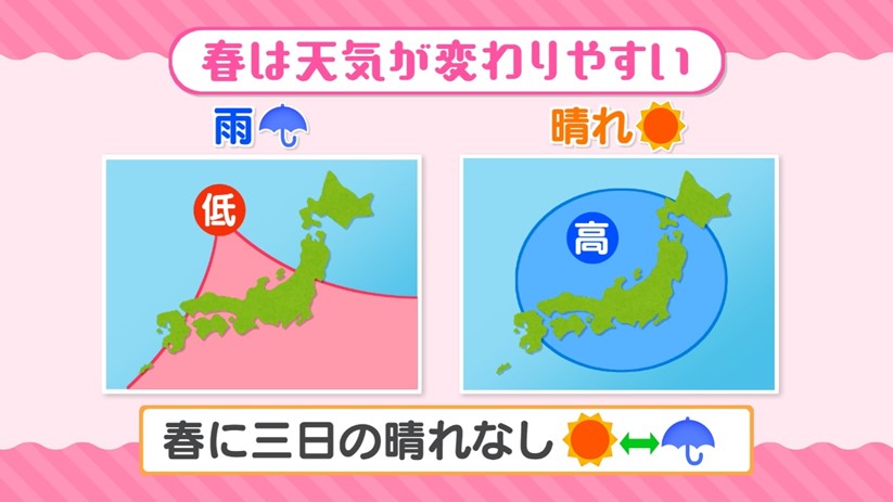 春の天気が4日くらいで変化する事から「春に三日の晴れなし」なんて言われたりもします。