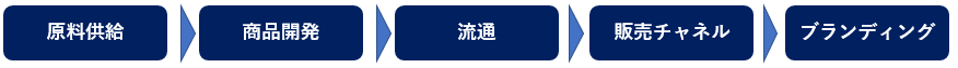 商品開発は、バリューチェーン・サプライチェーン構築の川上と考えます。商品開発から消費者に届くまでのステップを俯瞰して検討しましょう。