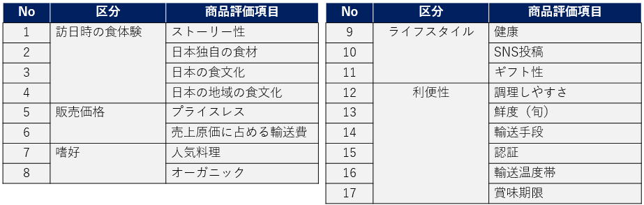 日本の食文化は、類似する他国商品が普及していても、商品のストーリー性、育まれた産地の風土など特徴を訴求でき、且つ訪日経験との連動性が高い重要な評価項目です。
