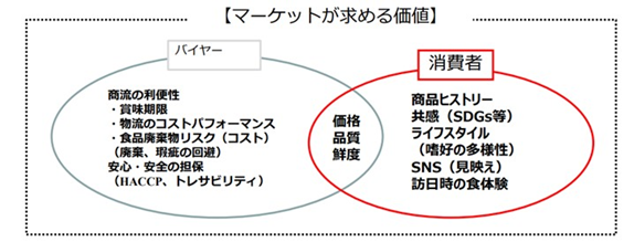 越境ECの場合、消費者が求める価値が重要になってきます。その上で、商流の利便性、販売先の輸入規制を考慮する必要があります。また、海外の消費者の特徴は、食文化などの商品ストーリーとSDGs等の共感価値が重要になってきます。