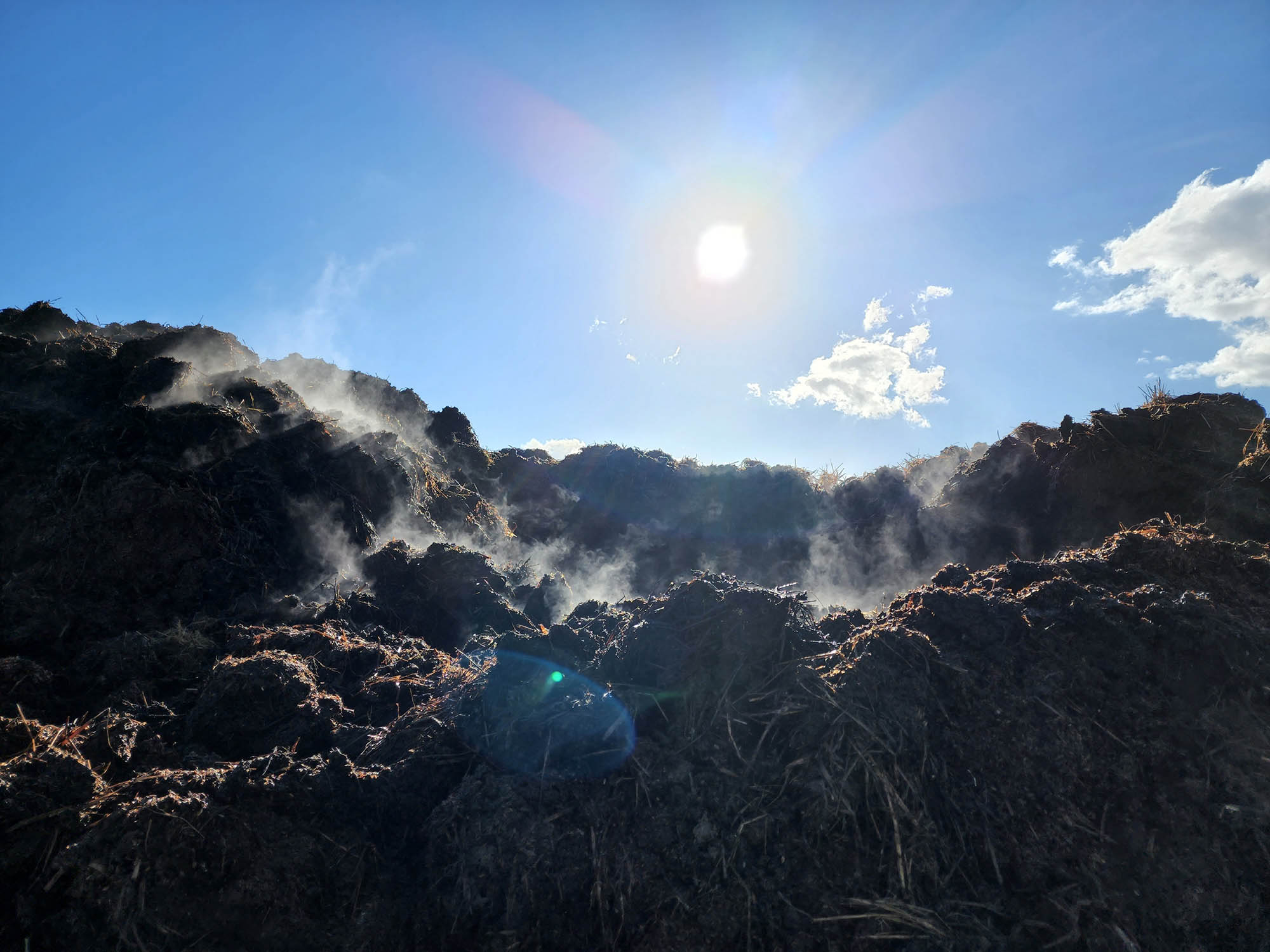 そこから、屋外の堆肥場で稲わらやもみ殻を混合し、何度も試行錯誤した結果、2010年頃に、冬季の4か月間に完熟した堆肥を生産することに成功しました。