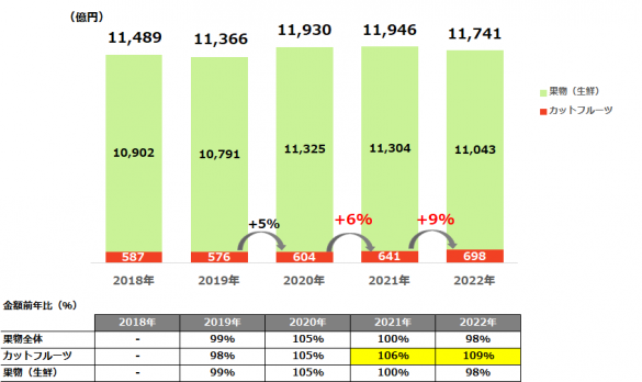 【果物(生鮮)・カットフルーツの市場規模の推移】