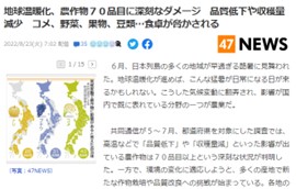 そのような地球温暖化による気温上昇は、農作物の生育に影響を与えていることがニュースにもなっております。
