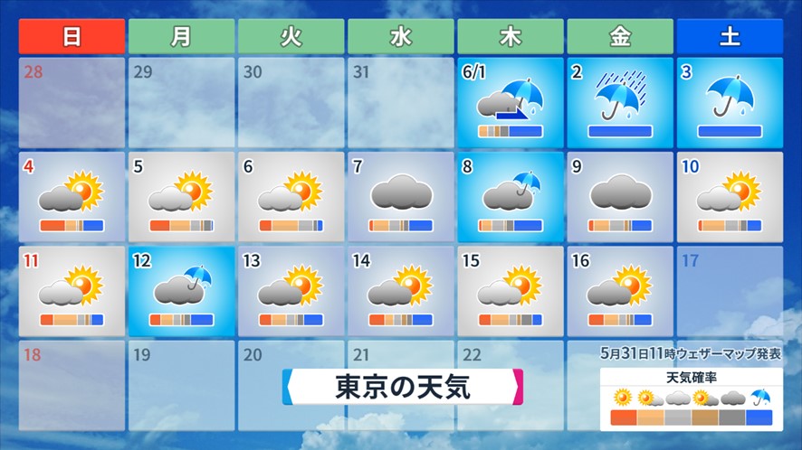 ウェザーマップ独自の16日予報で東京の天気を見ていきます。
