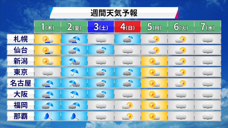 そして、週間予報をみてみると、今月前半は全国的に曇りや雨マークが多くなっています。