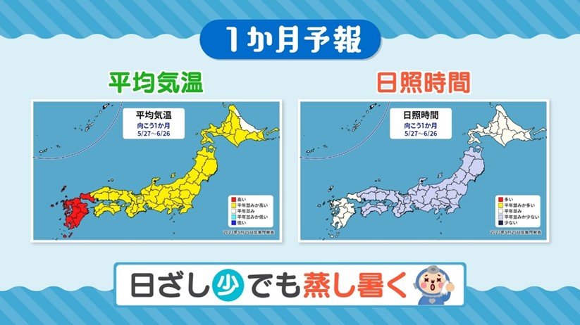 さらに、1か月予報で平均気温と日照時間を見ていきます。