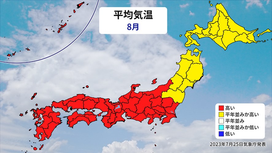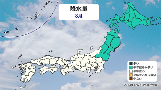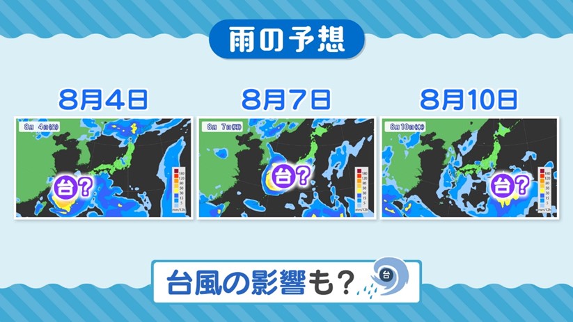 8日頃から雨予想で少し気温が下がるものの平年並み、その後お盆の頃になると再び厳しい暑さが戻ってきそうです。