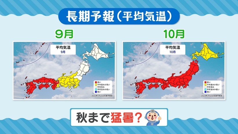 なんと今年は9月、10月まで全国的に気温が高い予想となっています。