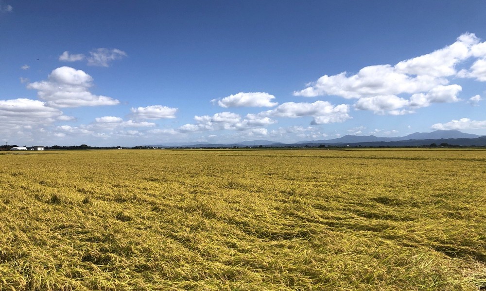 (広大な平野から稲刈りする圃場を見つけるのは至難の業)