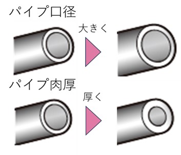 例えば、パイプ自体の口径を大きくしたり、肉厚を厚くしたりすることで鋼材自体の強度を上げています。