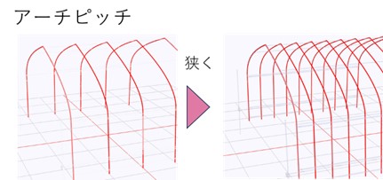 また、風が強い地域ではアーチパイプ間の距離(アーチピッチ)を狭くする傾向もあります。