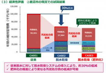 渡辺パイプの汚泥肥料は、新しい技術により、低コスト、低エネルギーでの運用が可能になっていること、さらに産業廃棄物としてお金を払って「捨てていた汚泥」を肥料化し、資源物として利用できるようになったことから、従来と比較して処理費の30%カットが可能になりました。